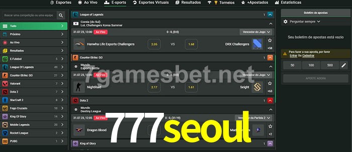 A aposta 777seoul oferece aos jogadores a experiência mais conveniente de apostas em eSports!